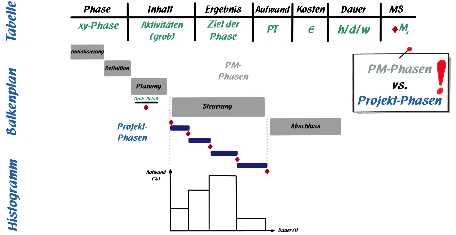 Auf der Grundlage der Auftragsklärung erstellt der Projektmanager einen detaillierten Projektplan, der den vereinbarten Leistungsumfang und die Vorgehensweise abbildet: