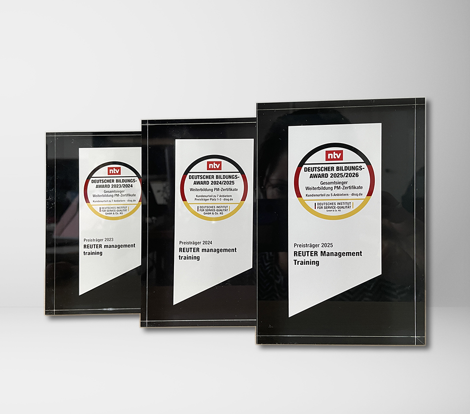 Der Award und die ausgezeichnete Weiterempfehlungsquote bestätigen: REUTER ist der verlässliche und renommierte Anbieter für Ihre Projektmanagement-Weiterbildung.